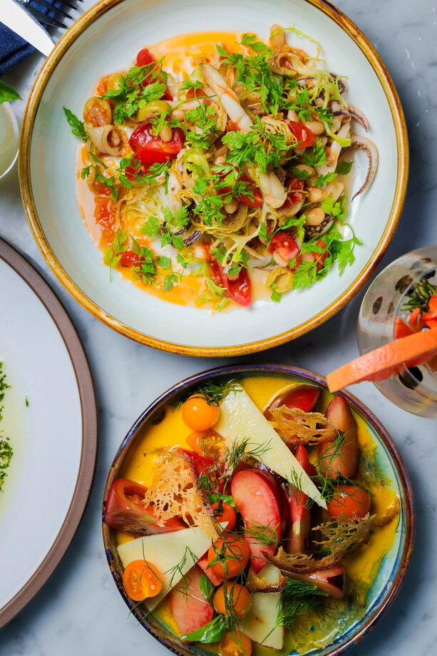 Bar Sur Mer: I always start with one of our signature gin and tonics, followed by the squid and white bean salad with fresh chervil, wood-fired sardines with persillade and lemon, or the steak tartare with olive vinaigrette and potato crisps. Finish with a glass of sweet, mineral-kissed txakoli and our warm Basque cheesecake with yuzu marmalade.