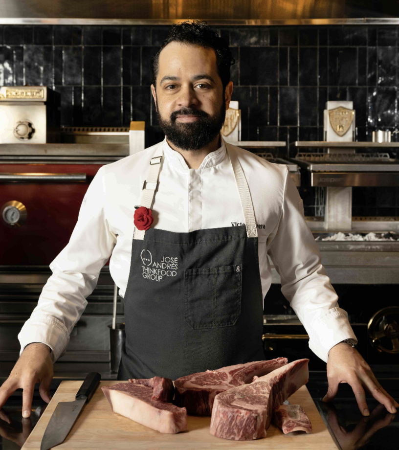 CHEF VICTOR: Start with our Bazaar classics, such as the Wagyu Airbread, Cotton Candy Foie Gras, Neptune Pillows, and our standout Bluefin Tuna with Egg. Next, enjoy our modern Caesar Salad before diving into one of our signature Chuletons (large-format ribeye), paired with our Josper-roasted mushrooms. This combination showcases the essence of The Bazaar.